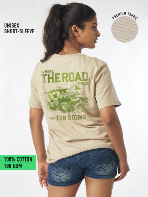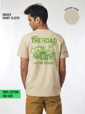 Unisex Short Sleeve – Beige – The Fun Begins ( Front Print)